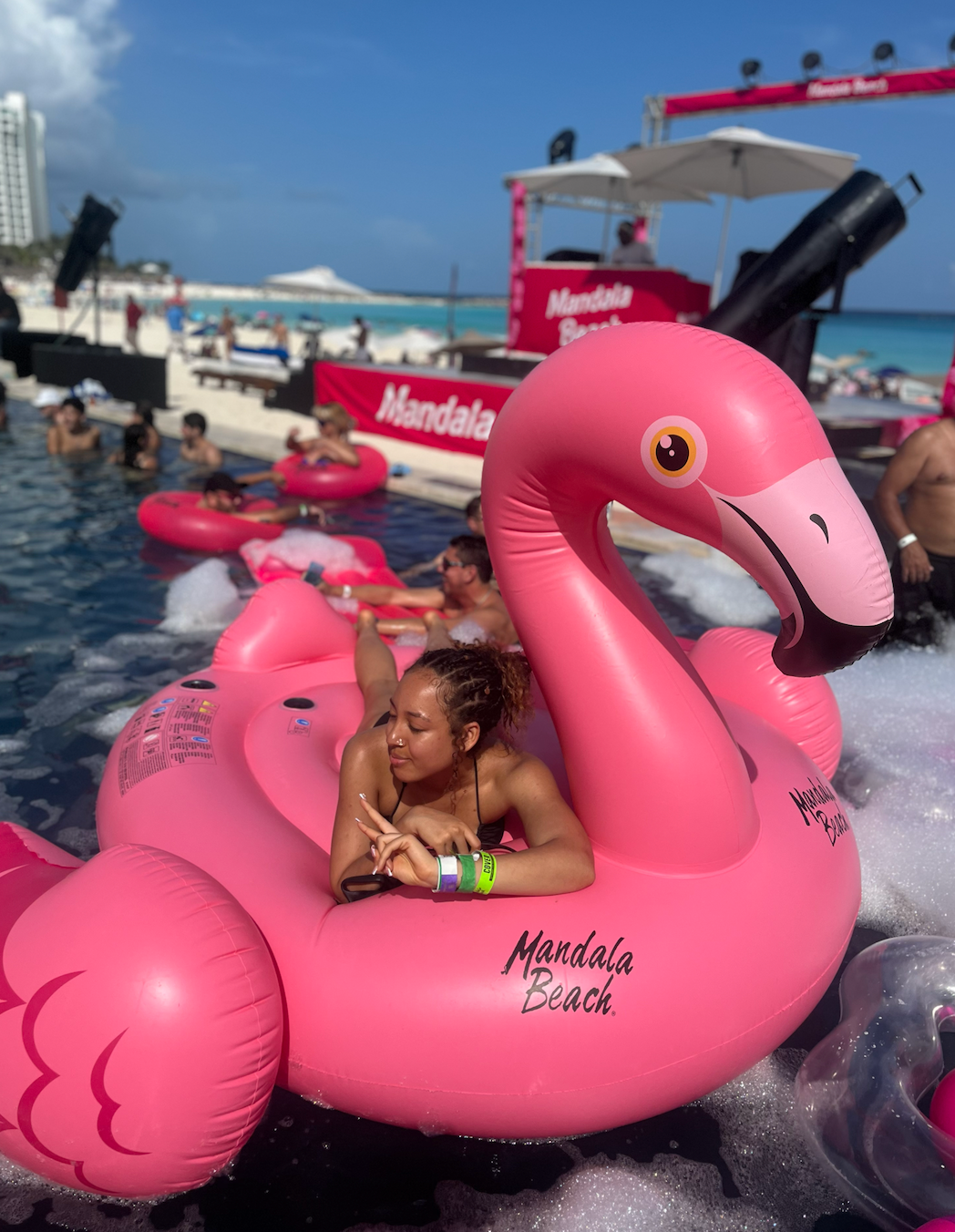 For the rest of the trip, we kept getting invited to their Airbnb, which was giving insane VILLA vibes — unlimited rooms, gorgeous, three to four floors, a private beach, a pool, everything! We went for a swim, and then Shella and I joined them for the Mandala beach club, where we got to meet the rest of his friends and the other girls. For dinner, they had a private chef cooking for 15 of us! The vibes were immaculate.