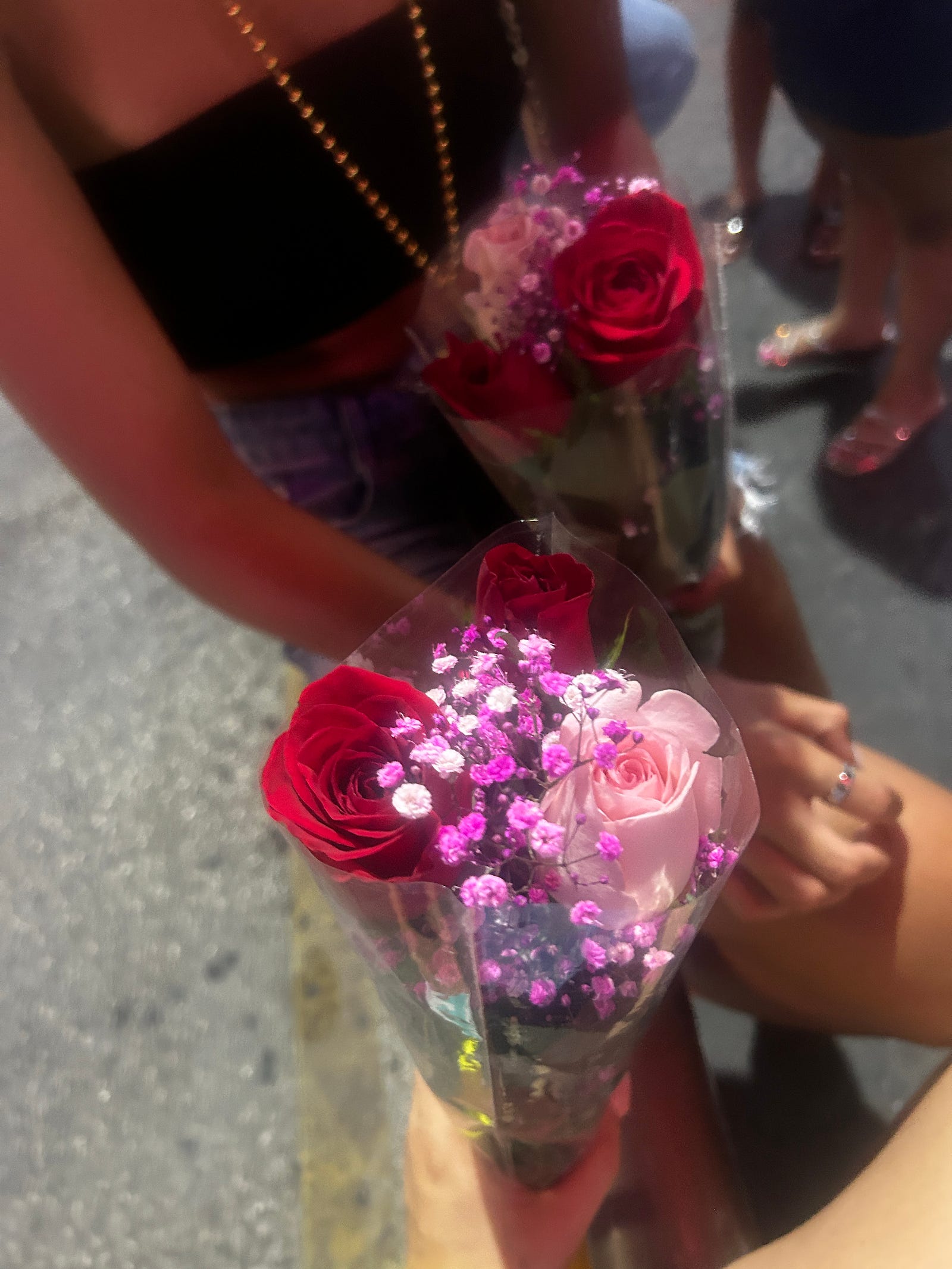 After Mandala, we were sitting in front of La Vaquita, and a drunk guy bought us $20 roses each.!! We were talking but not interested but we still exchanged instagrams because they were talking about coming on a boat with them — which is important for the story later!